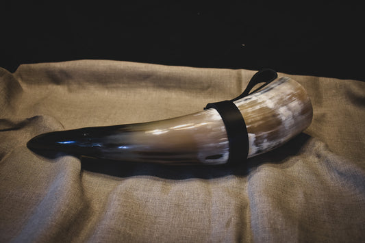 Premium Drinking Horn w/ Leather Belt Frog